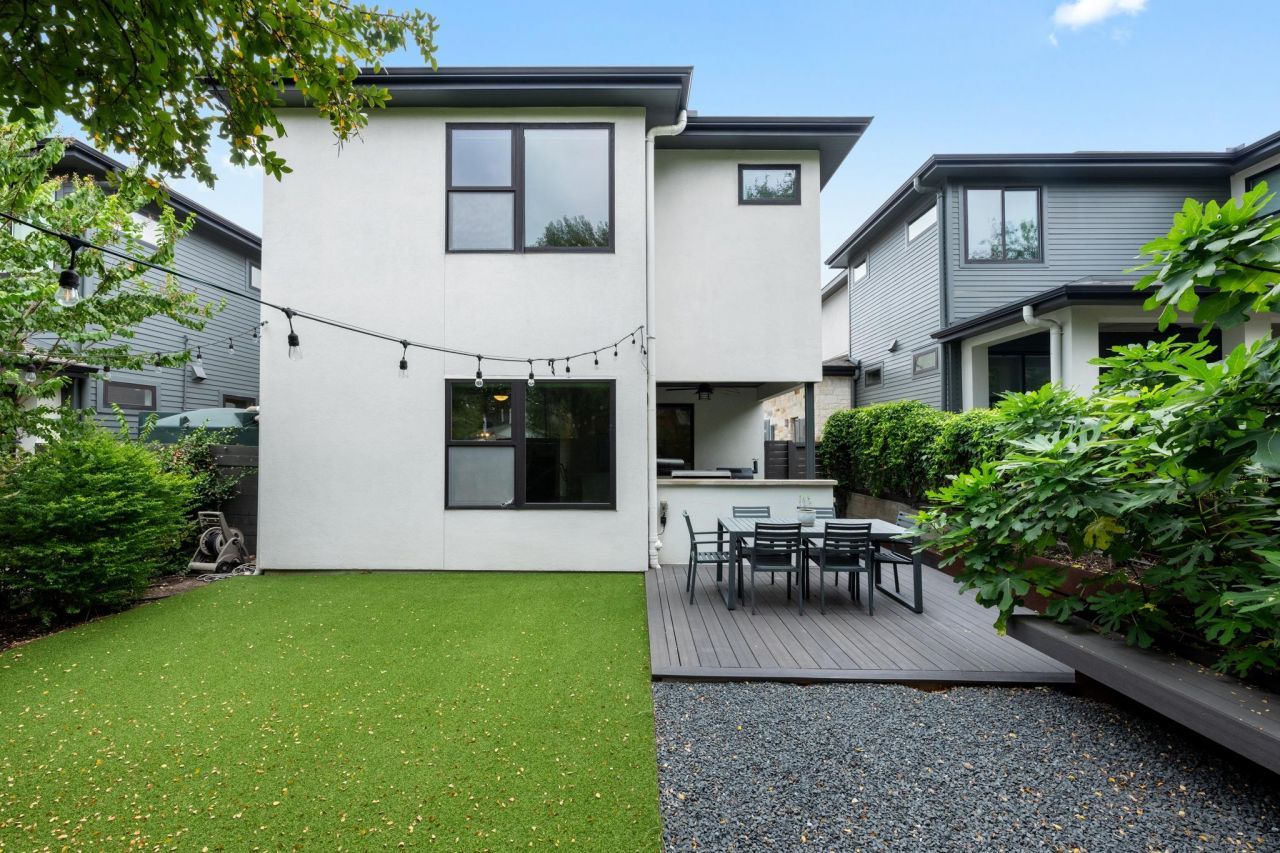 5-Star Green Built home in a private 14-home Zilker enclave by PSW/Storybuilt. Tankless water heater and rainwater collection provide exceptional energy efficiency and low utility costs.Open floor plan with modern finishes and abundant natural light throughout. Serene primary suite with soaking tub, glass shower, and treehouse-like views. Covered patio and private backyard with artificial turf Just steps from Zilker Park and Barton Springs, and minutes to SoCo, SoLa, downtown, and South Austin favorites.
