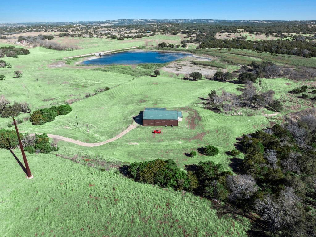 Create the kind of family traditions money cant buy?sunset porch nights, lake days, and Hill Country weekends that feel effortless. This fully furnished, fully fenced 56.273-acre Stonewall retreat features Schumann Lake on site: a private watershed reservoir shared by only a few adjoining owners, with approx. 11 acres of lake surface included. Fresh gravel entrance with culverts, recent cedar clearing and native-grass shredding, plus ATV/buggy trails already cut. Wildlife exemption in place.The 2-story barndominium offers 4BR/2.5BA and 2,270 SF, plus a 744 SF wrap-around covered porch and fire pit?made for hosting. Nine clerestory skylight windows flood the vaulted great room with natural light, reclaimed-wood plank walls, stained concrete floors, and big Hill Country views. Open kitchen with stainless appliances, large island, open shelving, and coffee bar. Walk-through closet with in-closet washer/dryer leads to the downstairs primary suite. Upstairs loft-style layout includes 3 bedrooms, full bath, great closets, and flexible bunk-style sleeping.Entertainers Toy Barn/party garage: 2,339 SF, double-insulated with 20' peak, two oversized doors, built-in bar, pool table, arcade stations, half bath, and abundant storage. Plus a 600 SF caliche-based pole barn and dock. On-site well (2017), sprinkler system, septic, water heater, water softener, 2 HVAC, double-pane windows, and 6 insulation for comfort and efficiency.Perfectly positioned for a do it all lifestyle?hunt in the morning, enjoy the 290 Wine Trail in the afternoon, and head into town by evening. Fredericksburg and Johnson City are about 25 minutes away, and Garrison Brothers Distillery is nearby. Close to LBJ Ranch, Luckenbach, and Albert Ice House & Dancehall. Austin, San Antonio, and New Braunfels roughly 1?1.5 hours.