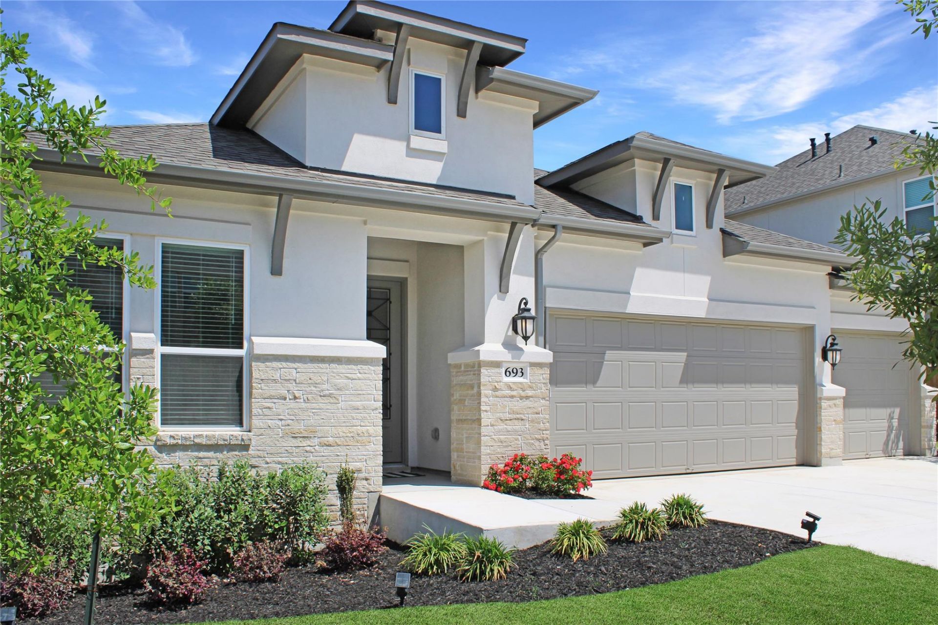 Welcome to this beautifully designed stucco and stone home in the highly sought-after 6 Creeks community in Kyle, Texas. From the moment you arrive, youll be greeted by stunning landscaping, a custom front door with elegant glass panels, and a warm, inviting entryway that sets the tone for the rest of the home. Offering over 3,500 square feet of thoughtfully planned living space, this exceptional property features five spacious bedrooms, four full bathrooms, a dedicated office with glass French doors, and a versatile flex space?perfect for a playroom, media room, or home gym. With abundant storage throughout, this home effortlessly combines functionality and style. Step inside to discover custom finishes, including elegant white oak luxury vinyl flooring that flows seamlessly through the main living areas. The heart of the home is the gorgeous kitchen, complete with a large island ideal for gathering, and an additional bay of cabinetry extending into the dining area?providing incredible storage and convenience for everyday living and entertaining. The expansive primary suite offers a true retreat, featuring a luxurious en-suite bathroom with a corner soaking tub, separate walk-in shower, and generous space to unwind. Additional highlights include a spacious three-car garage and the efficiency of two tankless water heaters, offering both convenience and energy savings. Meticulously maintained and move-in ready, this home is designed to meet the needs of modern living while offering timeless appeal. Located in the desirable 6 Creeks, residents enjoy upscale amenities including a resort-style pool, tennis courts, and dedicated office spaces, with a second amenity center coming soon?adding even more value to this vibrant community. Competitively priced and offering more space than comparable new builds, this home is an exceptional opportunity you wont want to miss. Schedule your private showing today and experience all that this remarkable property has to offer!